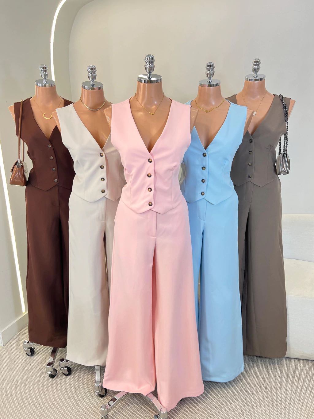 Conjunto Alfaiataria Colete + Calça Pantalona
