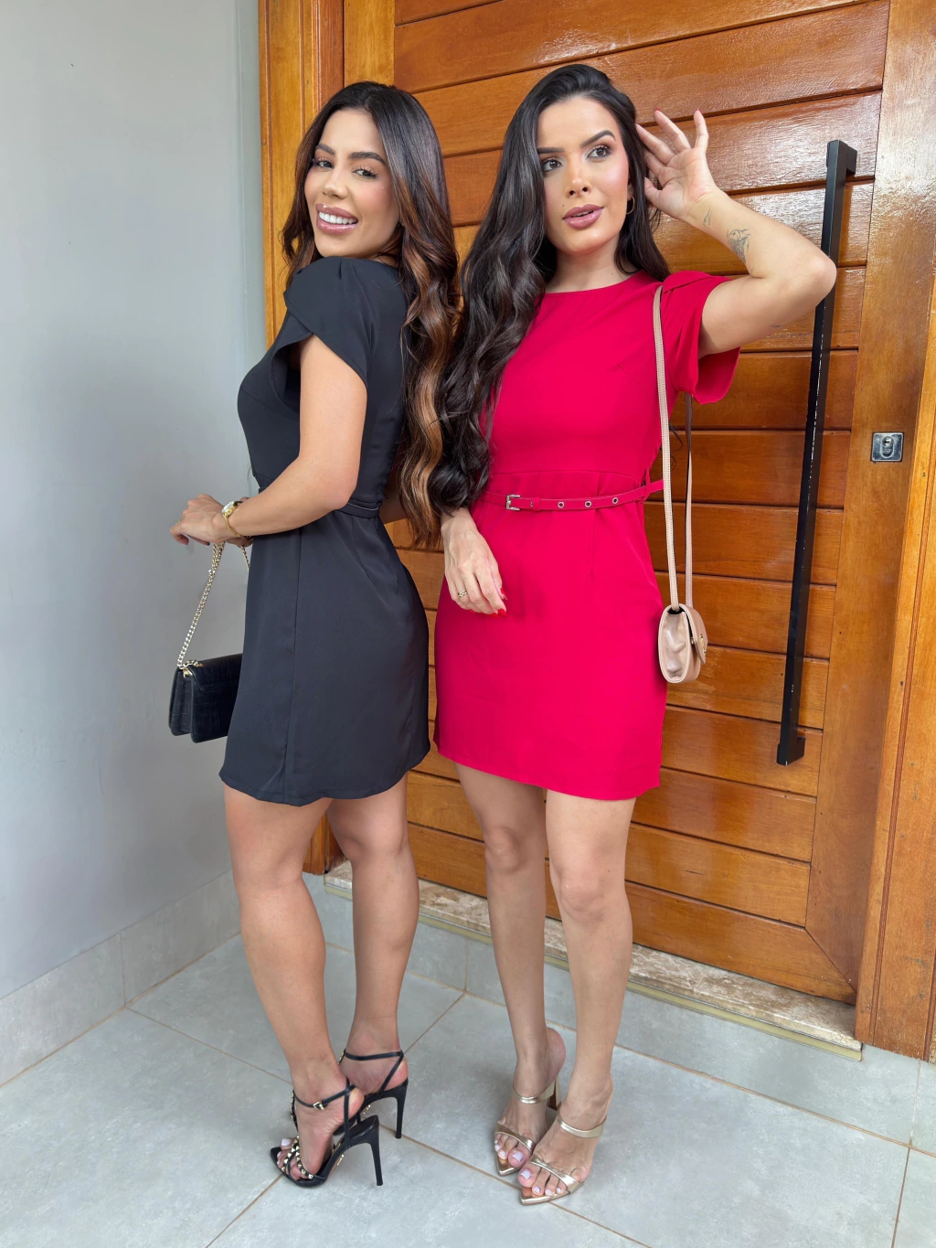 Vestido Alfaiataria Curto de Manga c/Cinto