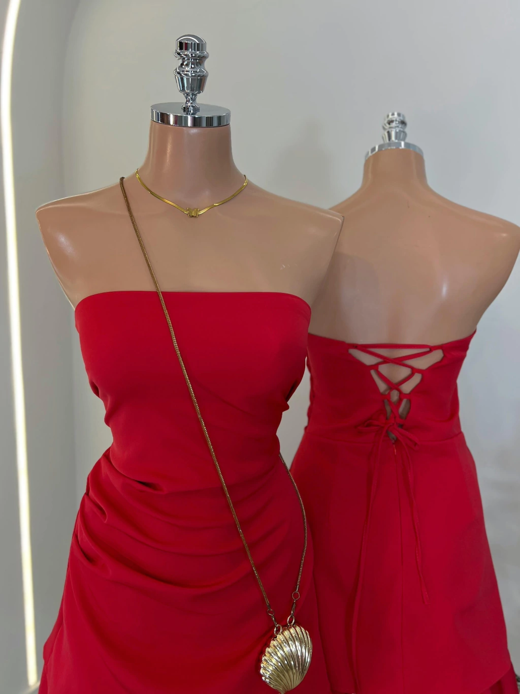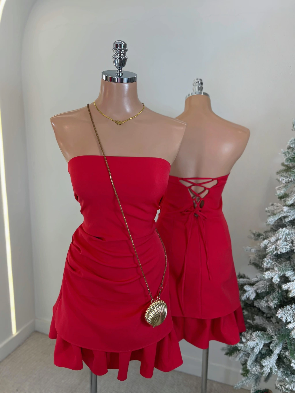 Vestido Alfaiataria Tomara que Caia c/ Babados