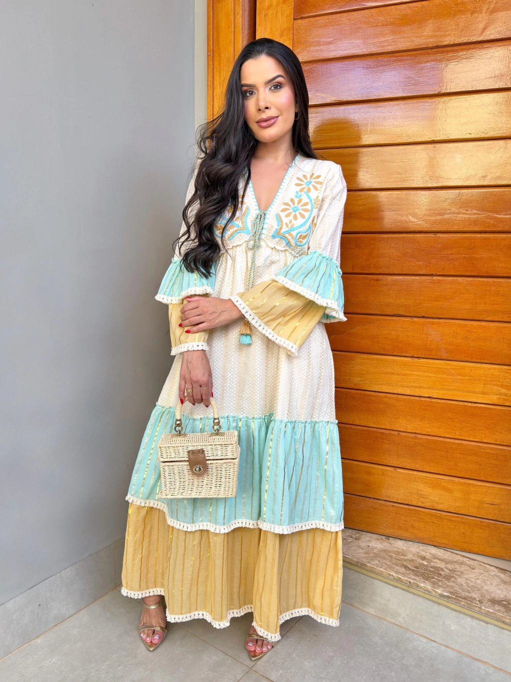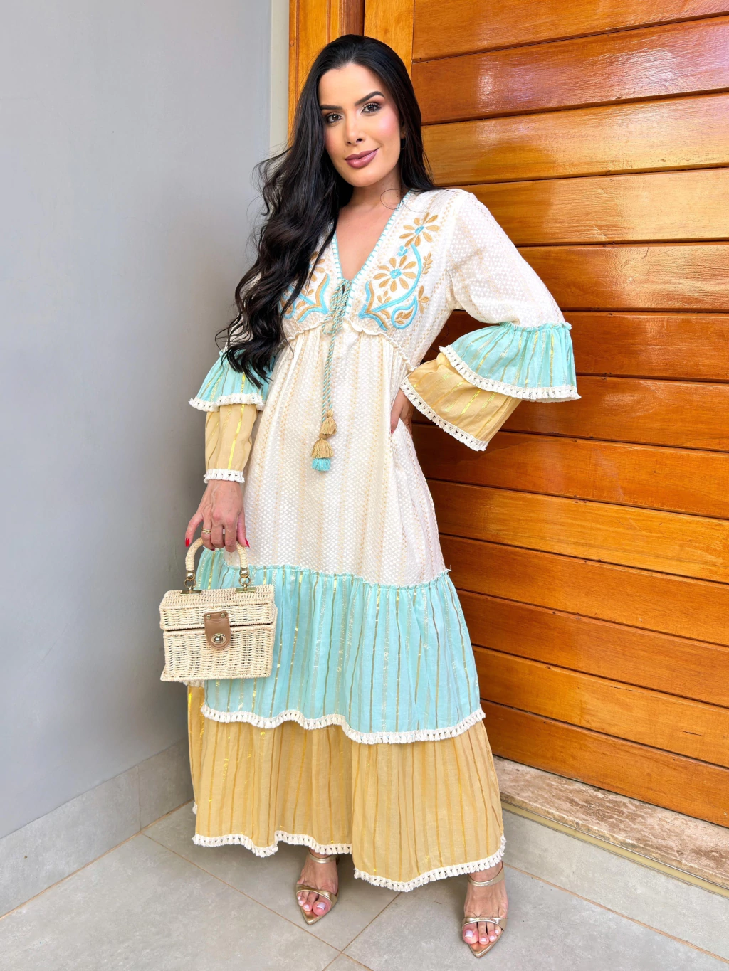 Vestido Indiano c/ Manga e Detalhes em Babados