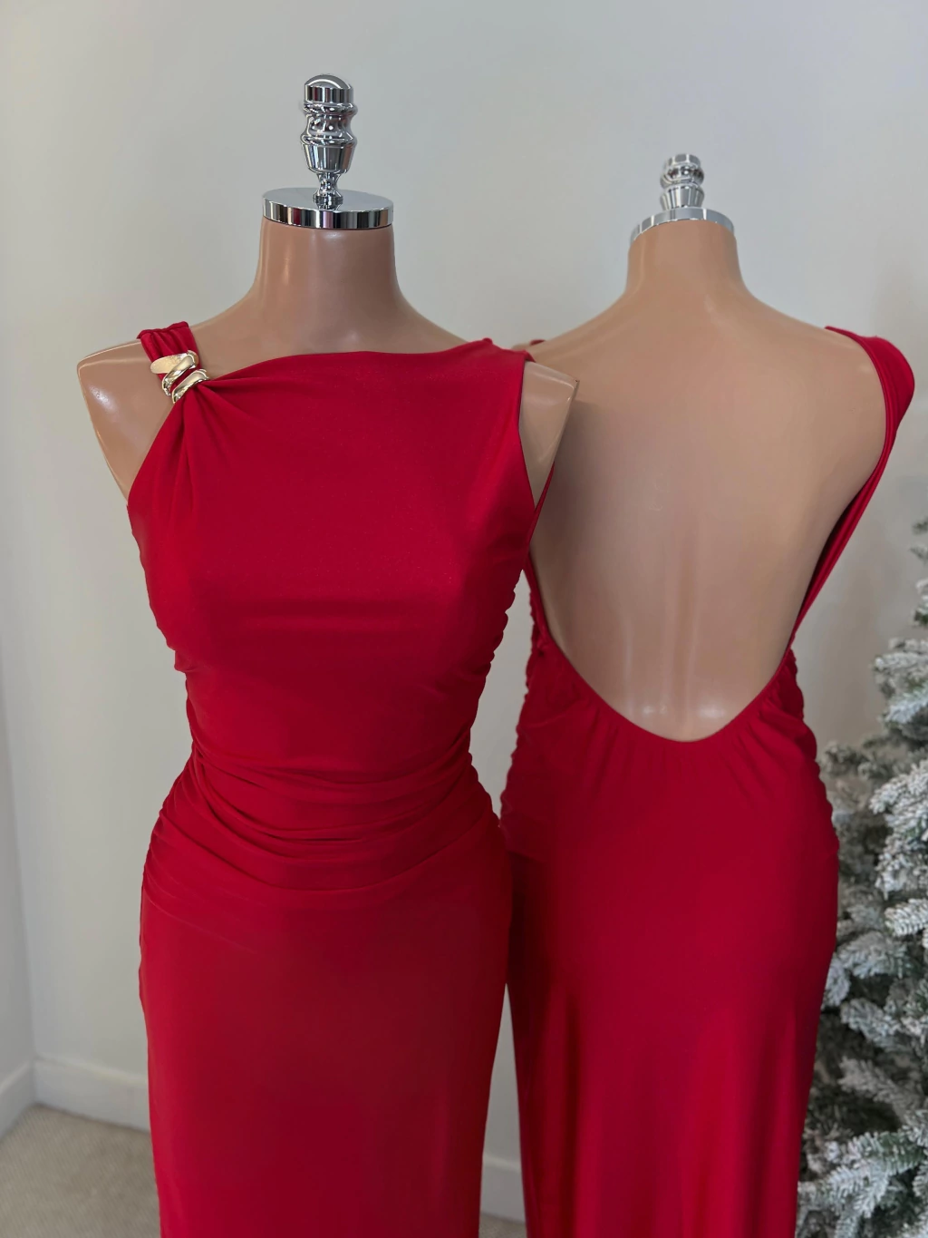 Vestido Longo Drapeado Alça Detalhe Dourado